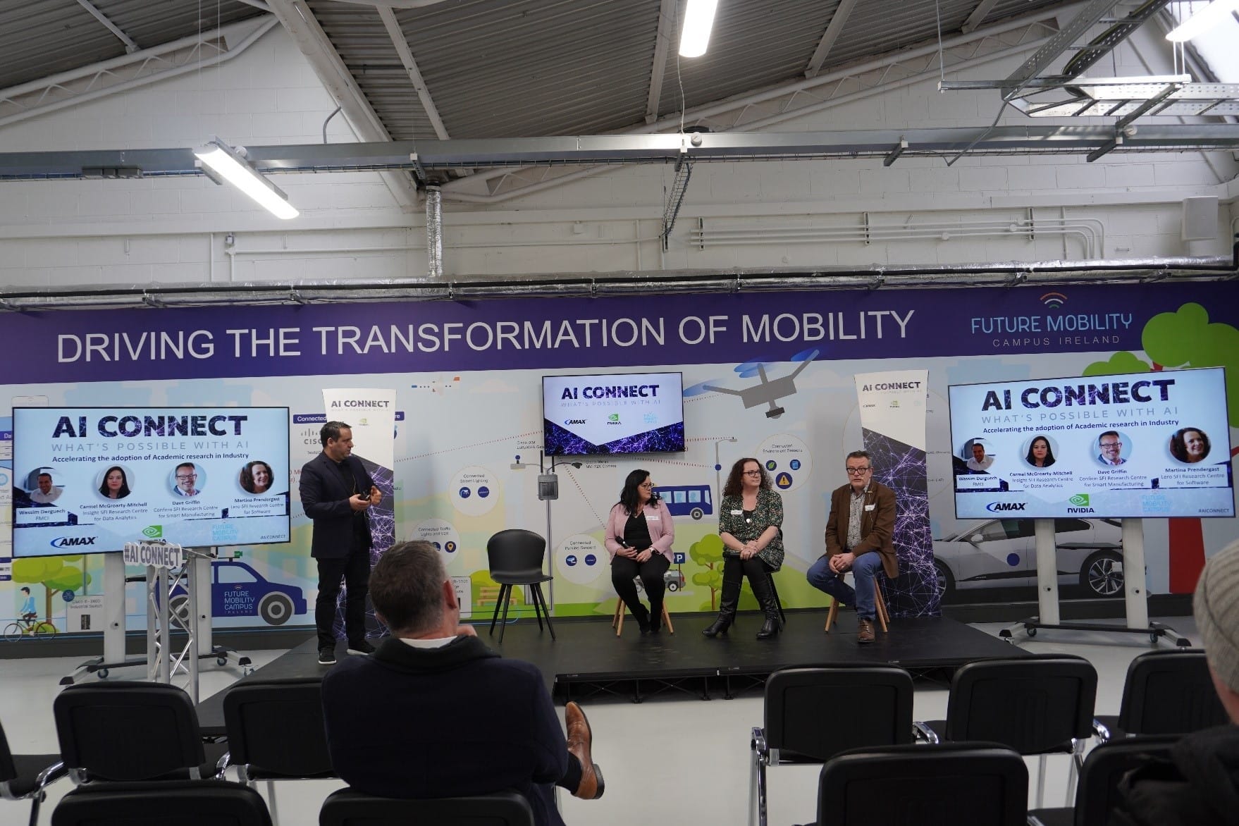 On March 9th, over 120 people braved freezing temperatures and snow to attend the inaugural AI CONNECT event at the Future Mobility Campus Ireland in Shannon, Co. Clare, Ireland. The event, organized by AMAX EMEA, brought together international experts, keynote speakers, local businesses, academic researchers, and Artificial Intelligence (AI) enthusiasts for a full day of discussions on the latest applications of AI.