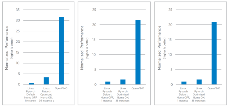 To verify the performance of the Medical Imaging AI solution based on AMAX’s Deep Learning All-In-One, Winning Health ran benchmarking tests for image recognition between Linux Pytorch Default Numa OFF, 1 instance; Configuration, Linux Pytorch Optimized Numa ON, 36 instances; Configuration and OpenVINO. In three various AI tests for segmentation, detection, and false-positive removal, the OpenVino tool kit increase inference speed resulting in 10-30 times faster compared to Linux Pytorch Optimized benchmark scores.