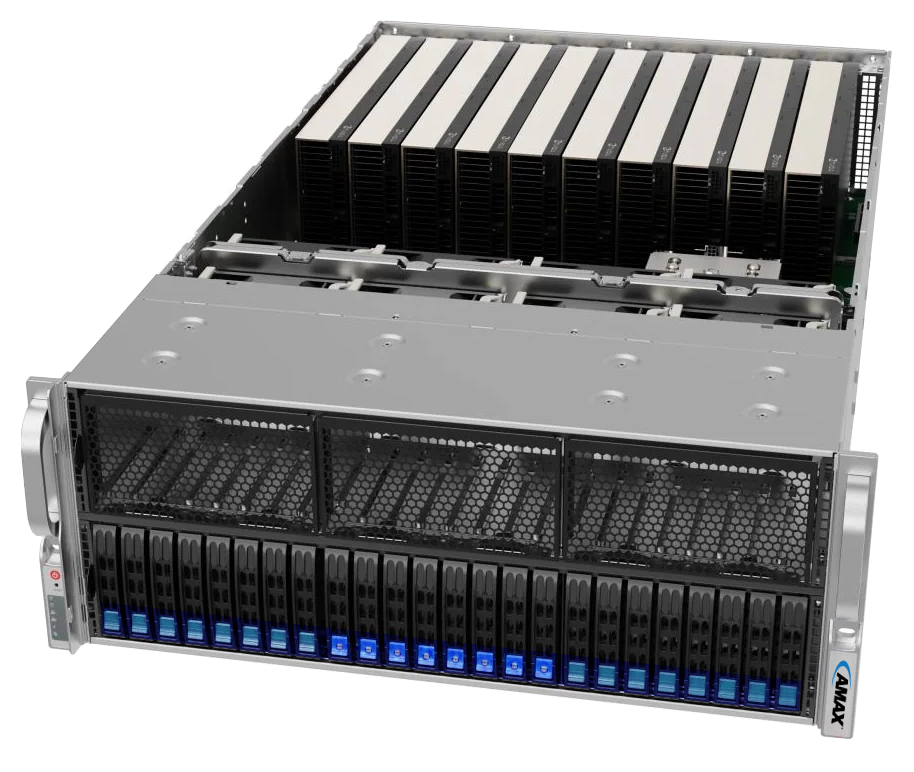 | GPU | • Max GPU Count: Up to 10 double-width or 10 single-width GPUs • Supported GPU: NVIDIA PCIe: H100, L40, RTX 6000 Ada Generation, L40S, A100 • AMD PCIe: Instinct MI210 • CPU-GPU Interconnect: PCIe 5.0 x16 Switch Single-Root • GPU-GPU Interconnect: NVIDIA® NVLink® Bridge (optional), AMD Infinity Fabric™ Link (optional) |