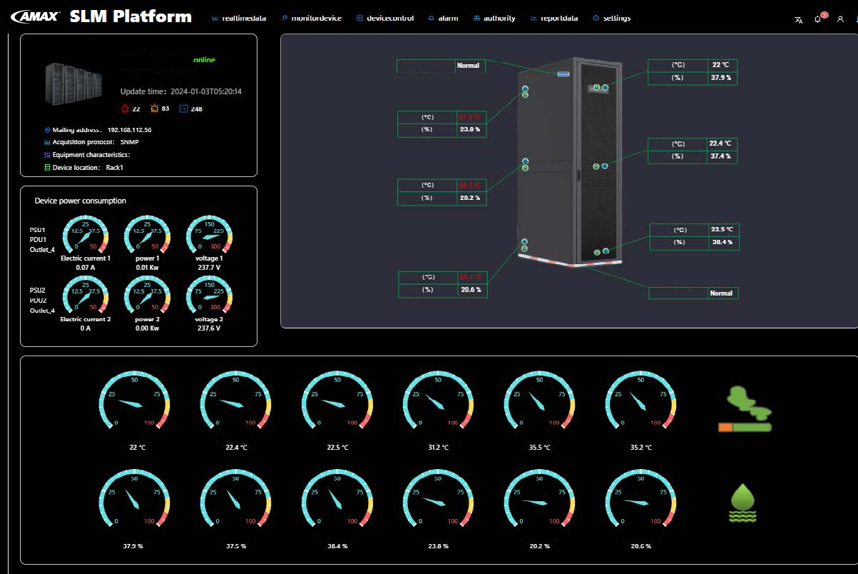 - Multi-Rack Support: The management system is scalable, supporting multiple racks for comprehensive data center monitoring.
