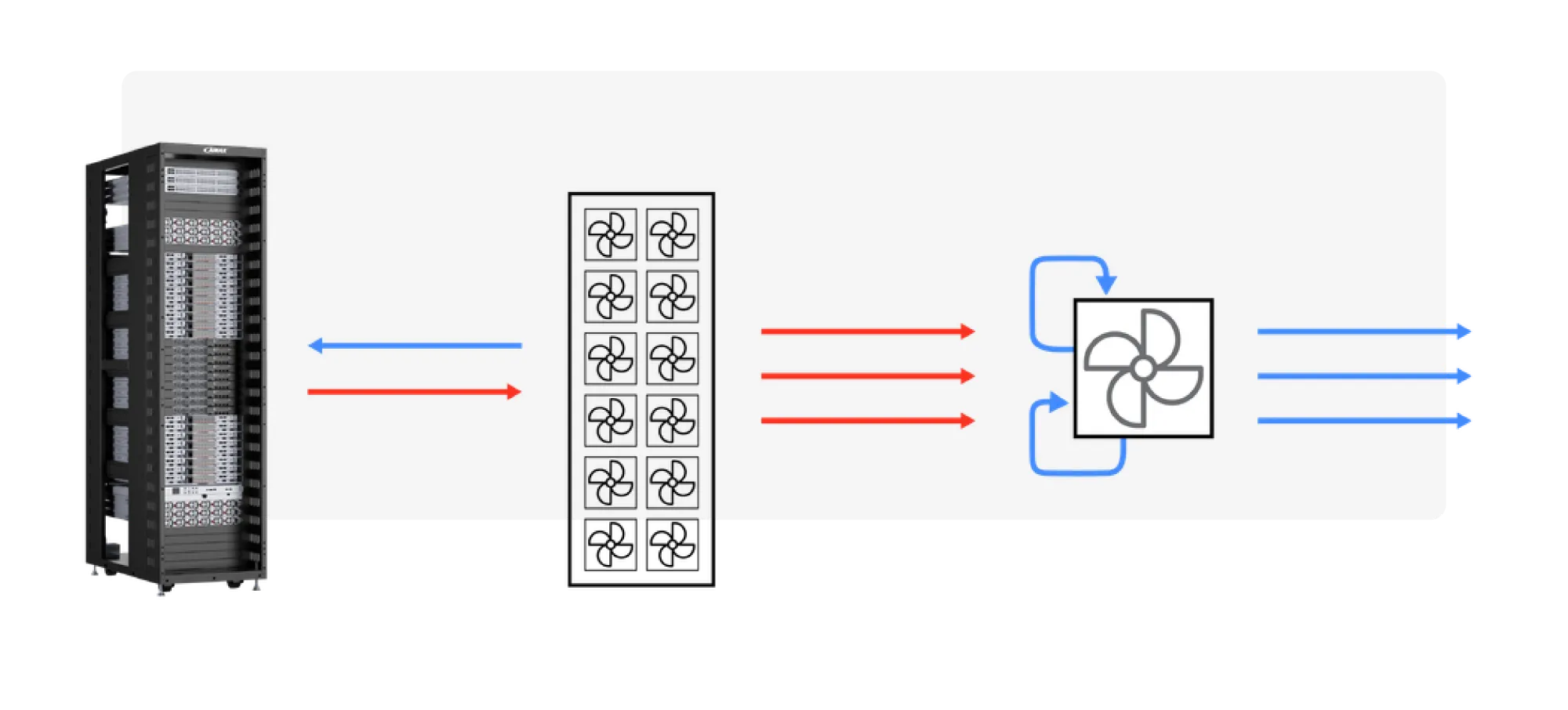 For full liquid-to-liquid cooling, the in-row CDU (sidecar) routes liquid coolant from the trays to an external heat exchanger or cooling tower. This option is designed for facilities equipped with water infrastructure.