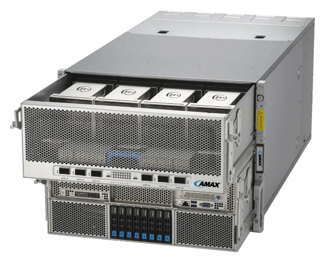 For organizations seeking an AI solution that leverages the performance of Intel® Gaudi® 3, AMAX offers the AceleMax® AXG-8281G. This 8U dual-processor server integrates 8 Intel® Gaudi® 3 HL-325L air-cooled accelerators, providing a powerful platform for AI training and inference at scale.